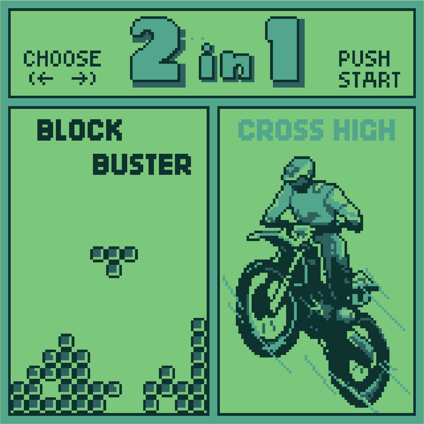 <ol> <li> <p><strong>Block Buster (The Breakout Clone)</strong>: If you’ve ever played <em>Breakout</em> or <em>Arkanoid</em>, you know exactly what to expect here. You control a paddle at the bottom of the screen, bouncing a ball to smash layers of bricks at the top. While it’s a simple concept, <em>Block Buster</em> actually handles the Supervision’s screen blurring better than most games because the action is vertical and relatively predictable. It’s not groundbreaking, but it’s a solid, functional time-waster.</p> </li> <li> <p><strong>Cross High (The Off-Road Racer)</strong>: This is where things get a bit more ambitious. <em>Cross High</em> is a pseudo-3D "behind-the-bike" racer, clearly inspired by games like <em>Enduro</em> or <em>Hang-On</em>. You navigate a motorcycle through various terrains, dodging obstacles and rival riders. Considering the hardware's limitations, the sense of speed is decent, though the 4-shade grayscale palette makes it a bit hard to tell the difference between a "puddle" and a "pitfall" until you’re right on top of it.</p> </li> <li> <p><strong>A "First" for the System</strong>: This release was significant because it proved that the Supervision’s relatively small 64KB/128KB cartridge capacity could actually hold multiple distinct games. It set a trend for the system's later life, leading to 4-in-1 and even larger multicarts as Watara tried to compete with the sheer volume of the Game Boy’s library.</p> </li> <li> <p><strong>The "Standard" Design</strong>: Like many Supervision games, these titles didn't have much in the way of music or deep storytelling. You get a basic title screen, a simple "Select" menu, and then it’s straight into the action. For a kid in 1992 who couldn't afford two separate $30 Game Boy games, this $20 bundle was a lifesaver, even if the games themselves were fairly generic.</p> </li> </ol>