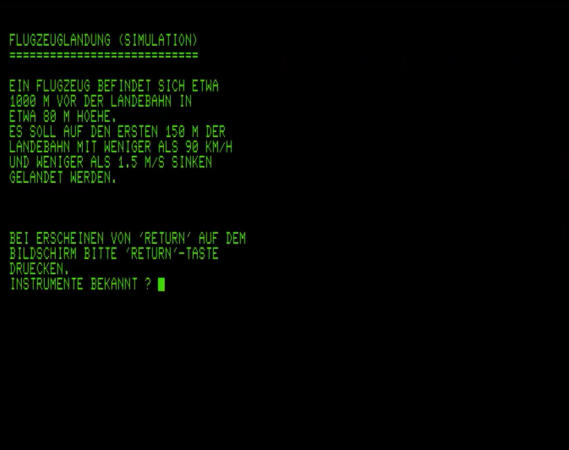 Fluglandung is a German simulation game for the Commodore Pet. It''s currently unknown to us what the game is simulating!