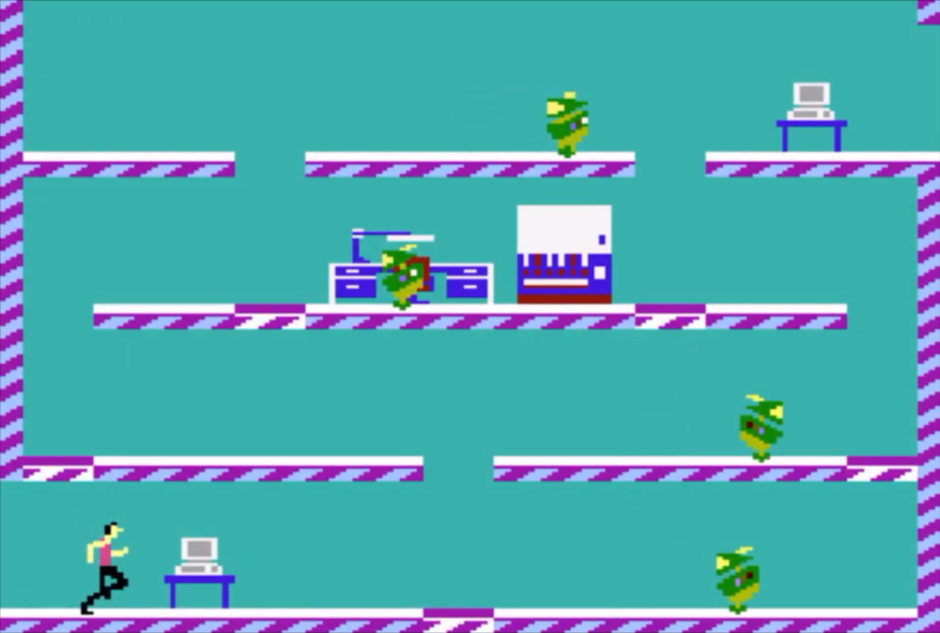 The game is set in a large, multi-room environment where the player searches furniture for puzzle pieces. These pieces are needed to complete the password puzzle, which is essential for unlocking Atombender''s control room. In addition to collecting password pieces, the player can also activate certain rewards, such as resetting moveable platforms and freezing enemy robots temporarily. The game also features bonus puzzles that provide additional rewards.