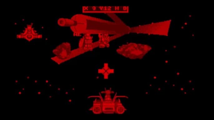 Players navigate a fleet of robots and ships on a grid-based map, aiming to eliminate enemies scattered across the terrain. The goal is to complete all eight levels without losing the fleet. Enemies are positioned at the top of the map, while players start from the bottom. To advance to the next level, players must destroy specific enemy battle cruisers, though not every enemy needs to be defeated. In combat, players can choose between two options: indirect attacks, which allow for long-range firing, or direct attacks, which are riskier but more powerful. Engaging an enemy shifts the game into a combat scenario where players use either a ranged laser cannon or a melee laser sword. Combat involves maneuvering robots between the foreground and background until one side is defeated. When battling enemy cruisers, the game switches to a third-person perspective, requiring players to fire enough shots to destroy the cruiser.
