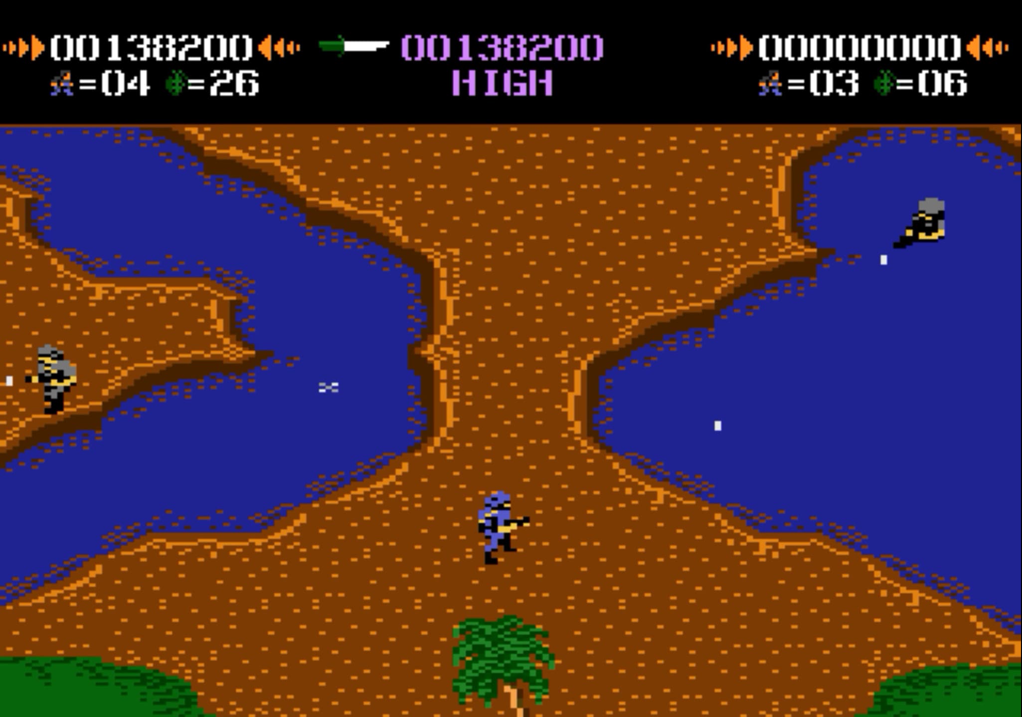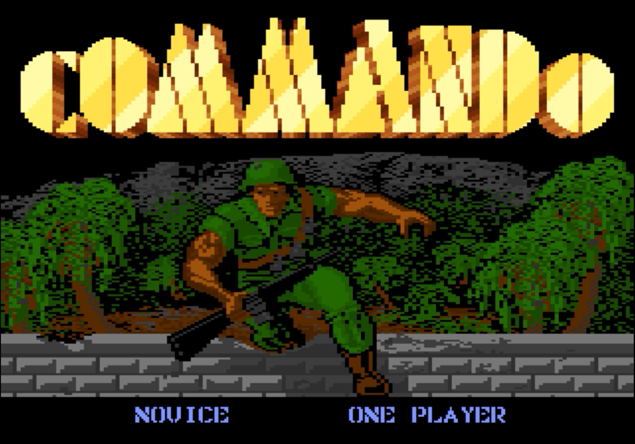 In Commando, the player controls a soldier named Super Joe, who is dropped into a hostile jungle by helicopter and must fight his way out against waves of enemy soldiers. Armed with an assault rifle (which has unlimited ammunition) and a limited supply of hand grenades, Super Joe faces a relentless onslaught.