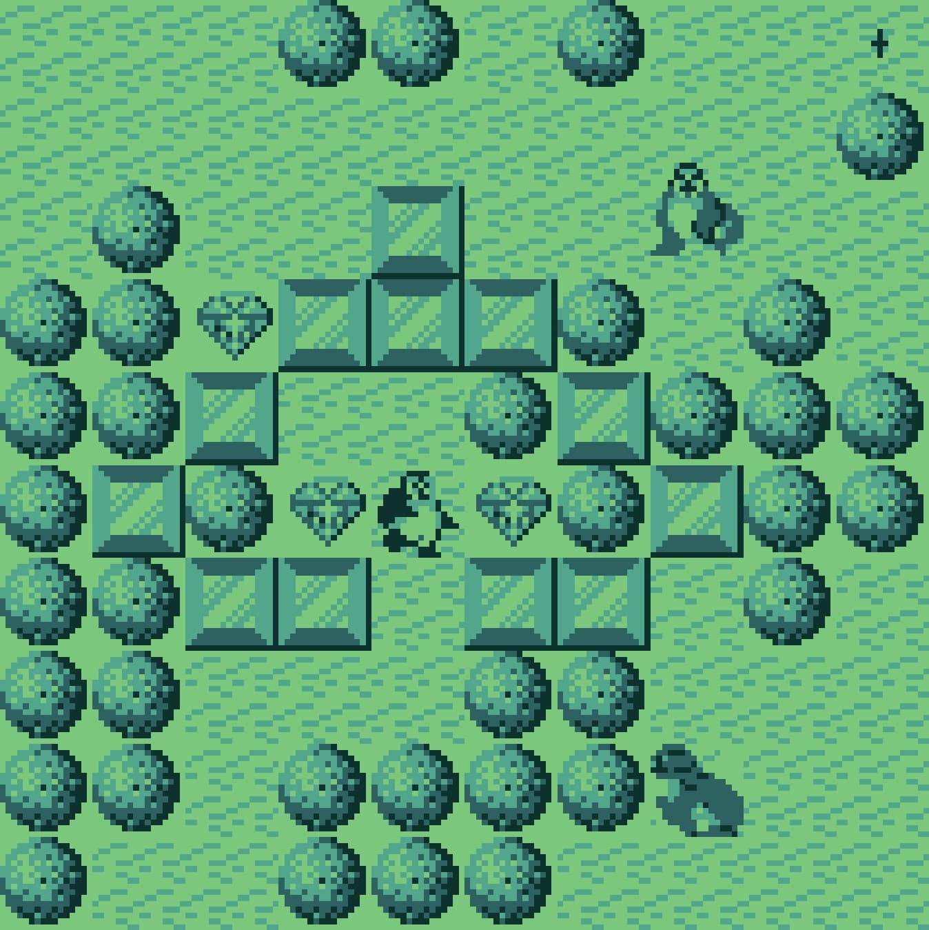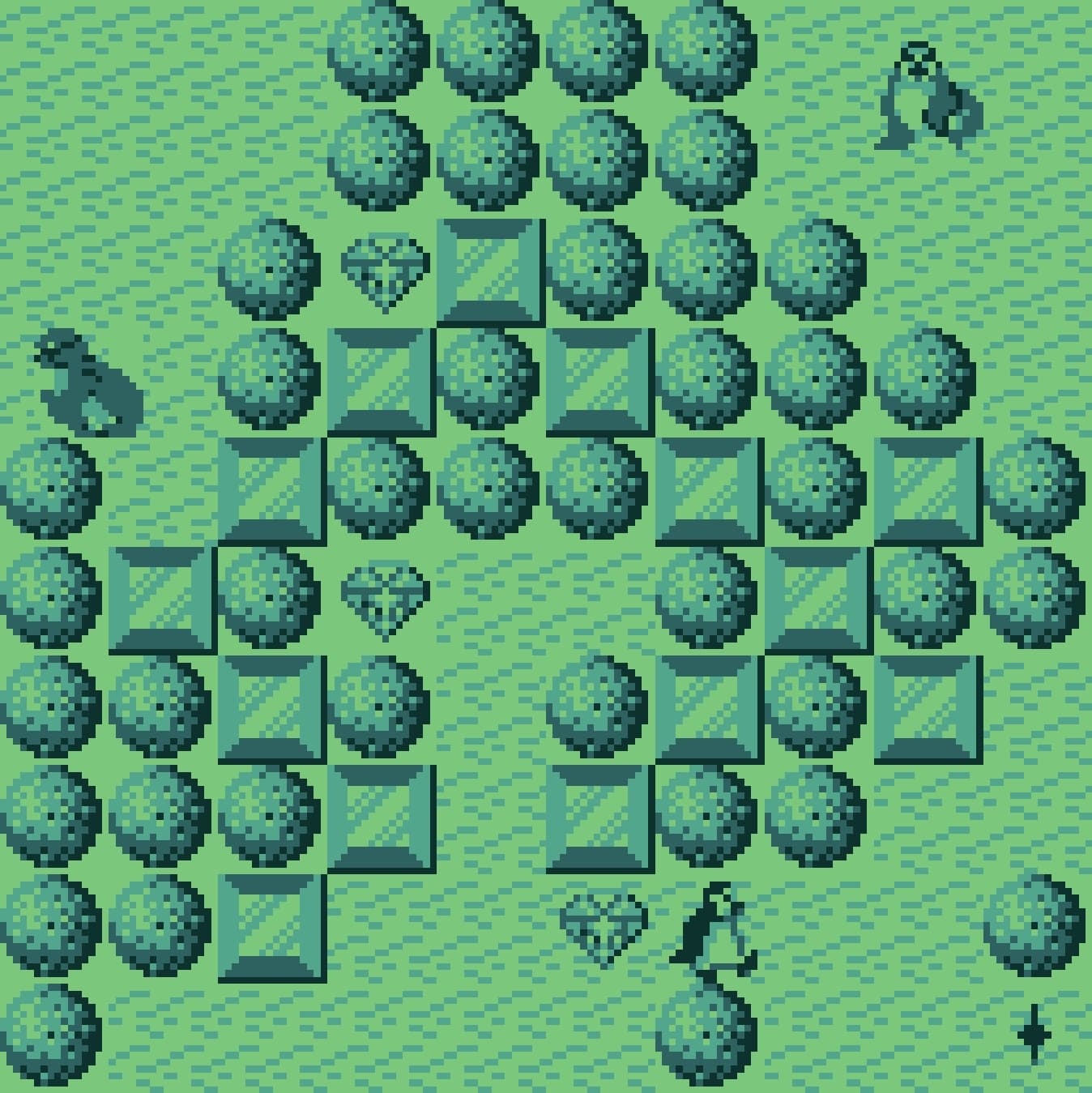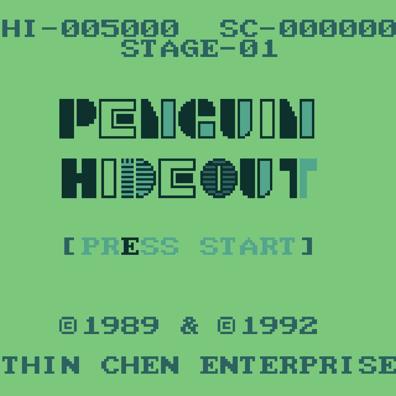 Visually, Penguin Hideout is a stark reminder of the hardware limitations of the early 1990s budget market. The Supervision’s unlit, four-shade monochrome LCD was infamous for its heavy motion blur, meaning that your penguin and the sliding ice blocks often leave faint, ghostly trails across the rather murky display. Despite this, Thin Chen Enterprise managed to inject a fair bit of character into the chunky sprites, ensuring the icy environments and enemy creatures remain mostly distinct amidst the grey and olive tones. The auditory experience is equally primitive, featuring a repetitive, tinny chiptune soundtrack that loops endlessly through the console's mono speaker, punctuated by sharp electronic blips whenever an ice block is shattered or a level is cleared.
