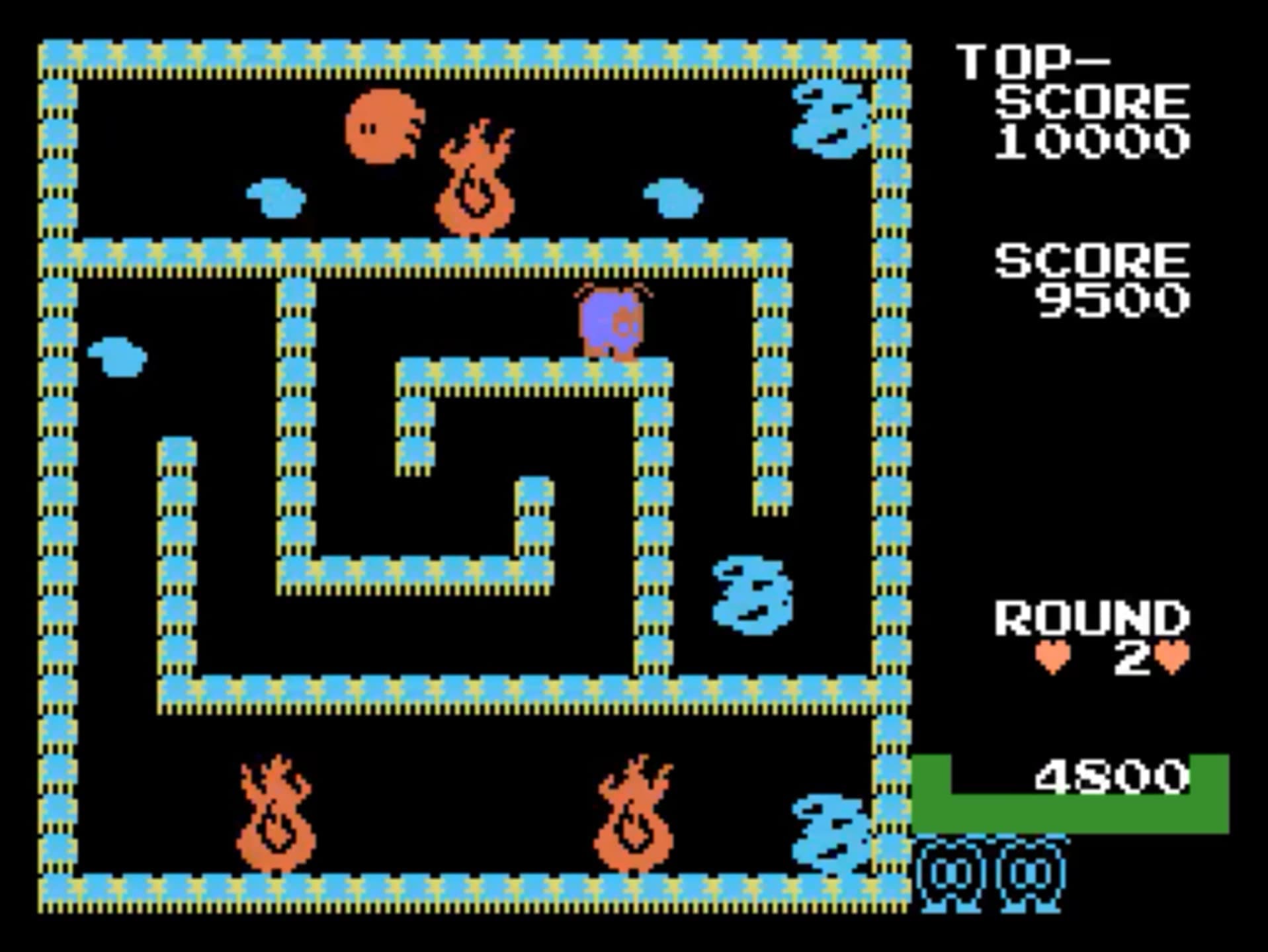In Guzzler, players control a creature that can drink water from puddles to extinguish fires and defeat fire-themed monsters that spawn from those flames. Each level features a maze with varying degrees of openness, and players must put out all the fires to complete the level while avoiding the pursuing monsters.