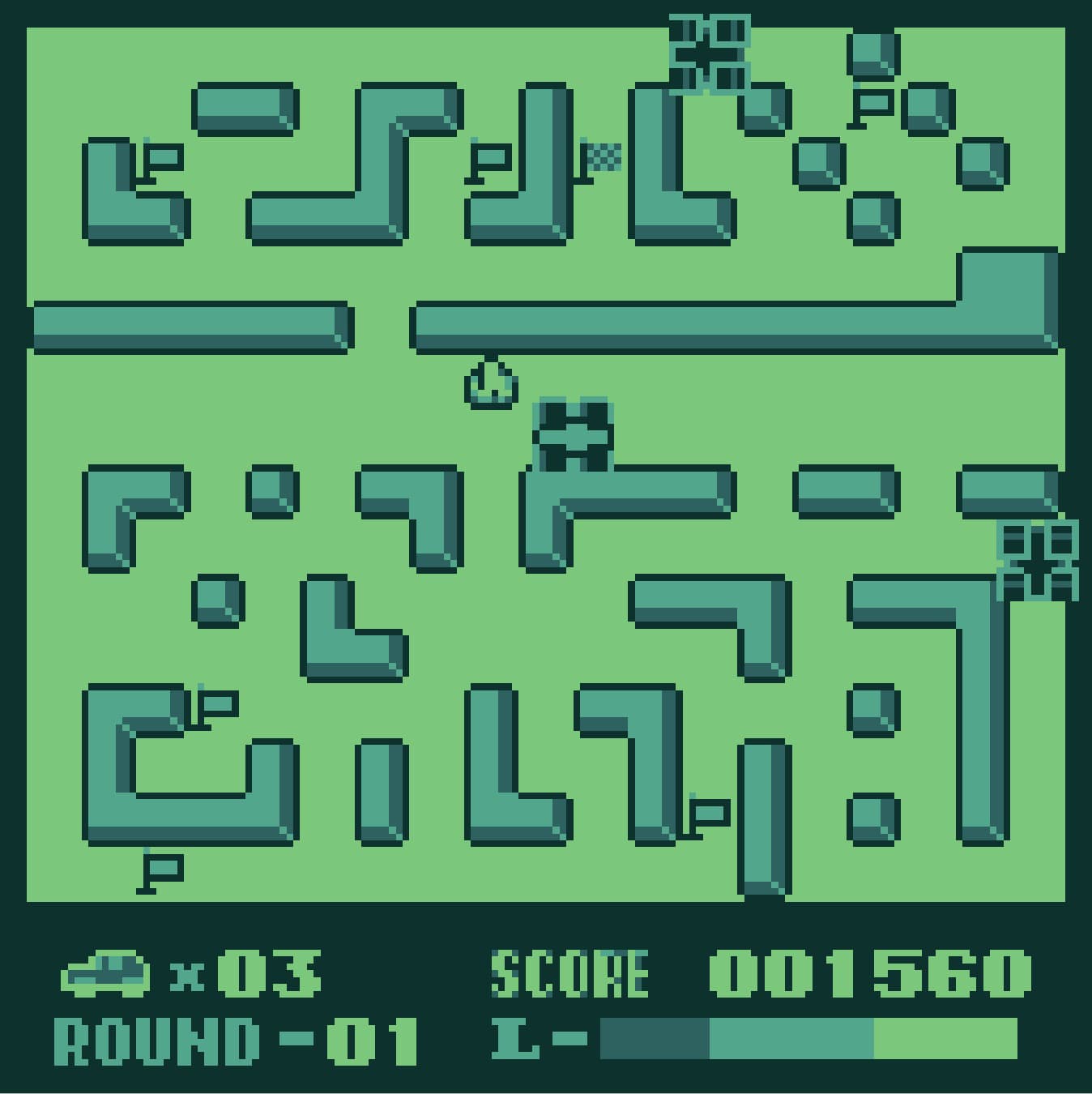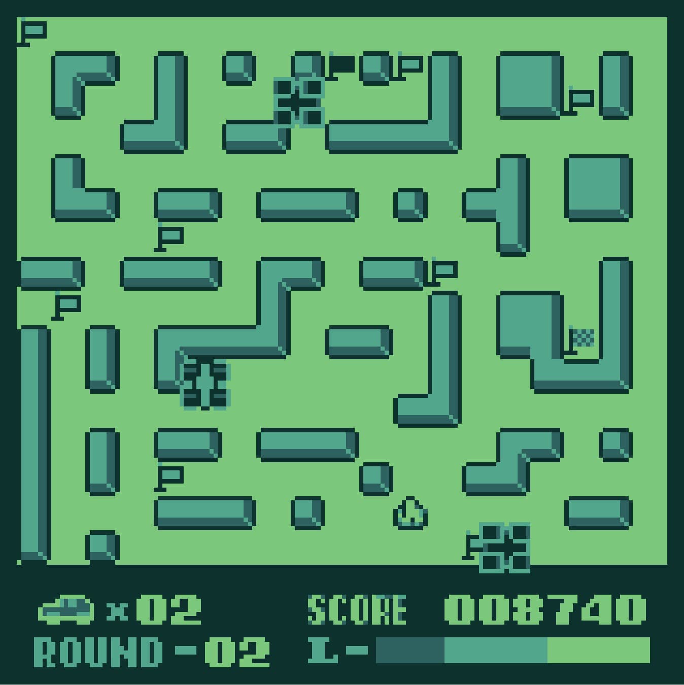 You view the action from a top-down perspective as you drive a small car through a sprawling, scrolling maze. Your goal is to collect all the flags scattered throughout the level while avoiding enemy vehicles that are actively hunting you down. Like its inspiration, the game gives you a defensive tool: you can release "smoke screens" behind your car to temporarily stun or confuse the chasing enemies, though this consumes your limited fuel supply.