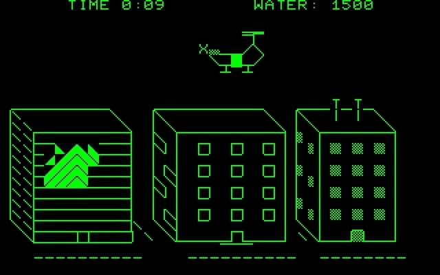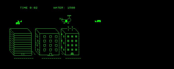 In FIRE!, you take on the role of a helicopter pilot for the Fire Department, tasked with dousing burning buildings from the air. The PETSCII art style is charming, though the helicopter''s design might come off as a bit silly. The gameplay is engaging, but the controls can feel sluggish—perhaps you can picture yourself battling strong winds as you manoeuvre the helicopter over the flames.