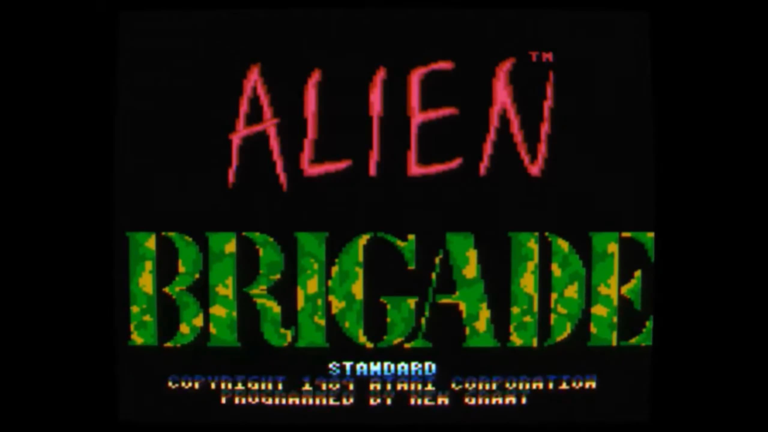 The game is played from a first-person perspective and features horizontal scrolling in both directions as the player faces off against various enemies, including possessed soldiers, human and alien vehicles, and other creatures.