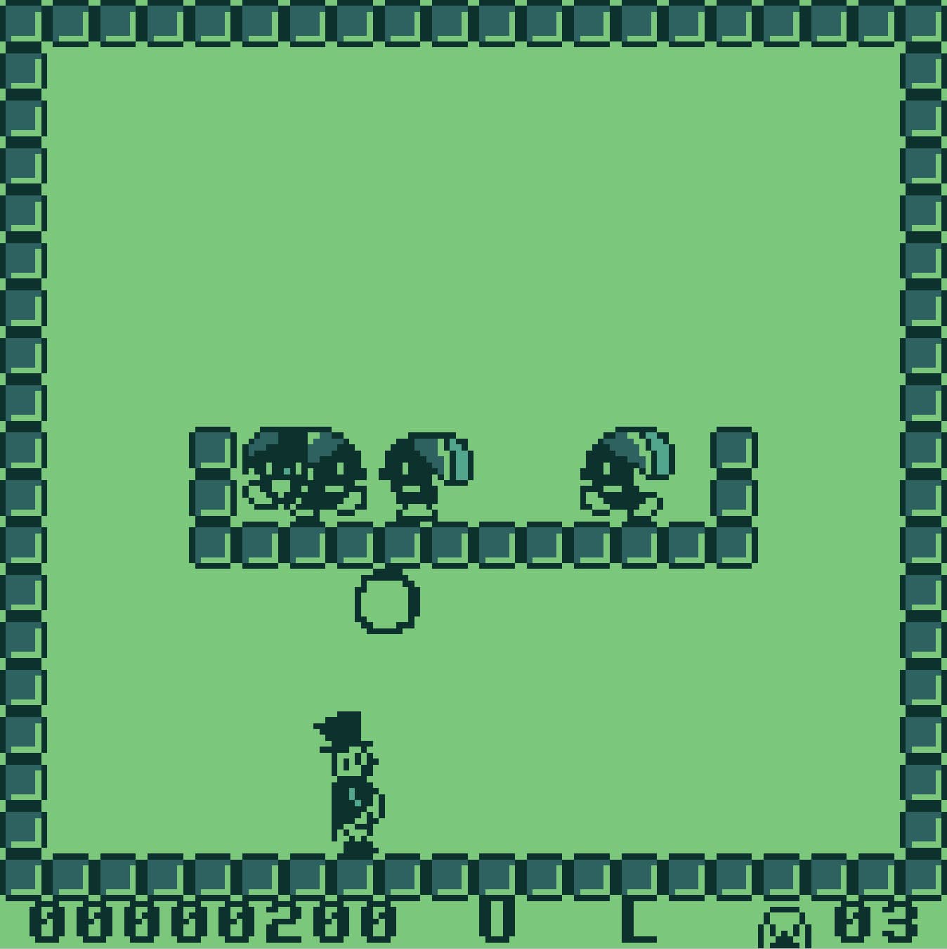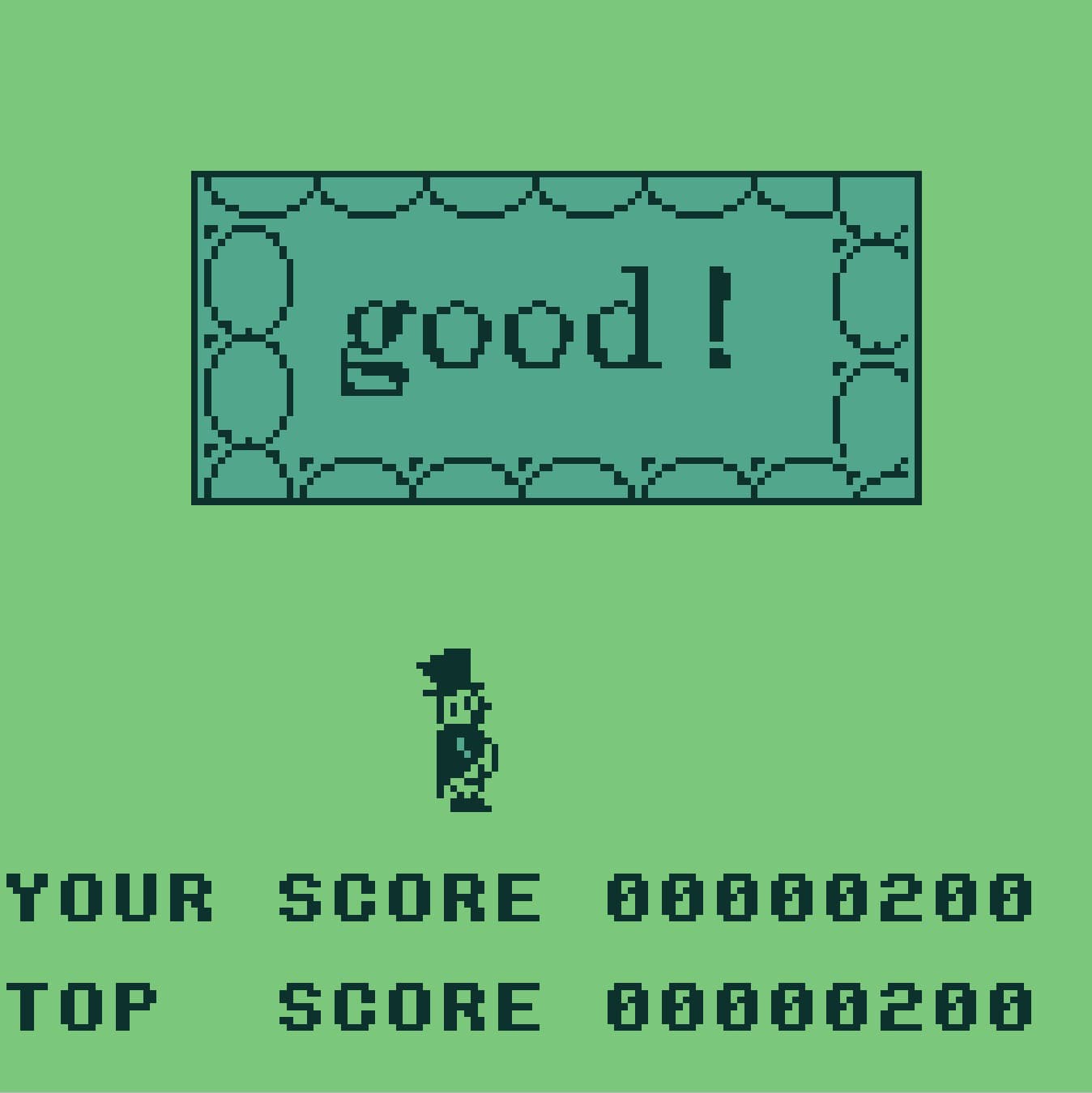 On a technical level, the game is a bit of a double-edged sword. Because it is a static-screen game with no scrolling, it manages to avoid the worst of the Supervision’s notorious motion blur. The four-shade LCD handles the movement of the balls reasonably well, though you still get a bit of a "comet tail" effect when things really start to pick up speed. The character sprite is surprisingly large and well-defined, giving the game a bit more visual punch than the more minimalist puzzle games on the system. It’s a clean, high-contrast look that works perfectly with the hardware's limitations.