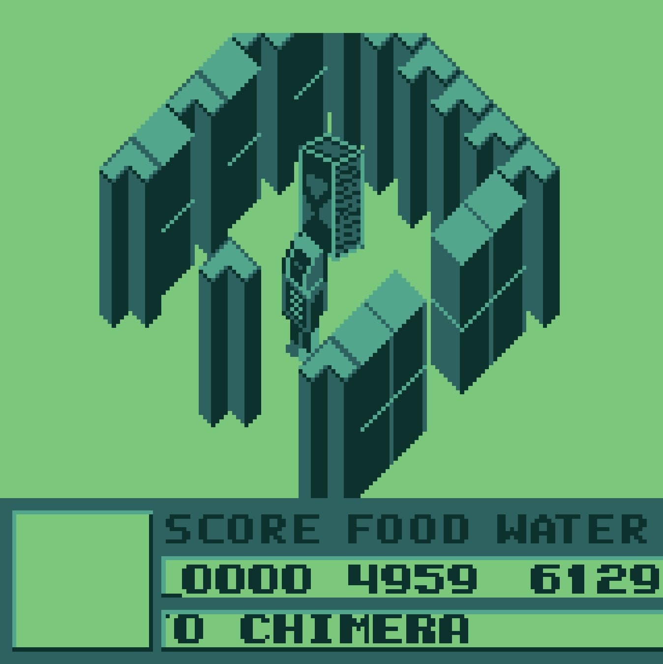 Chimera is one of the most complex and atmospheric titles in the Supervision library, primarily because it isn't a simple arcade clone but a licensed port of a deep home computer classic. You take control of a lone robot sent deep into the bowels of a massive, automated spaceship that is on a collision course with Earth. Your mission is grim and precise: you must navigate the ship's four distinct zones to find the components of a self-destruct mechanism and blow the vessel apart before it reaches its destination.