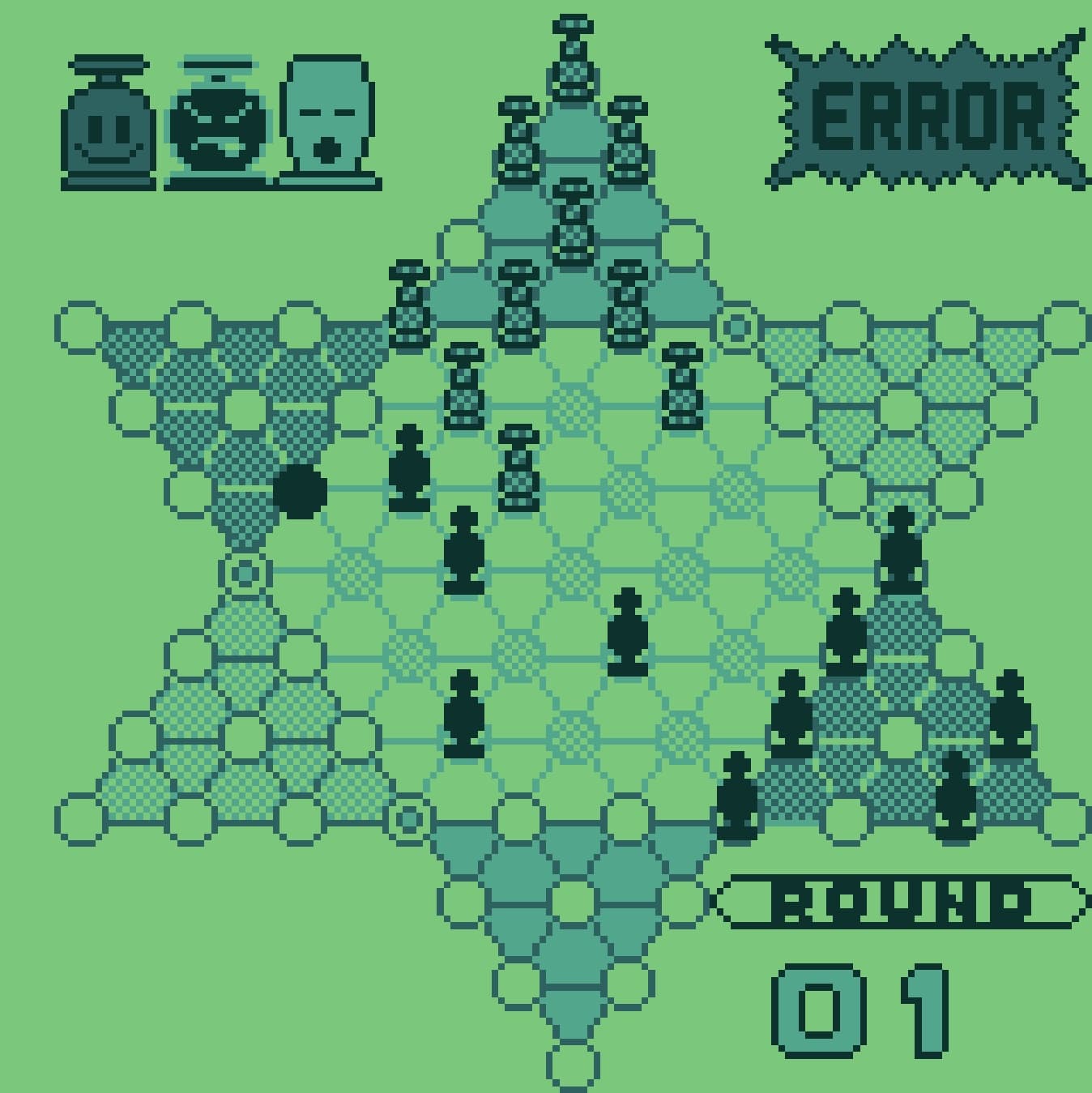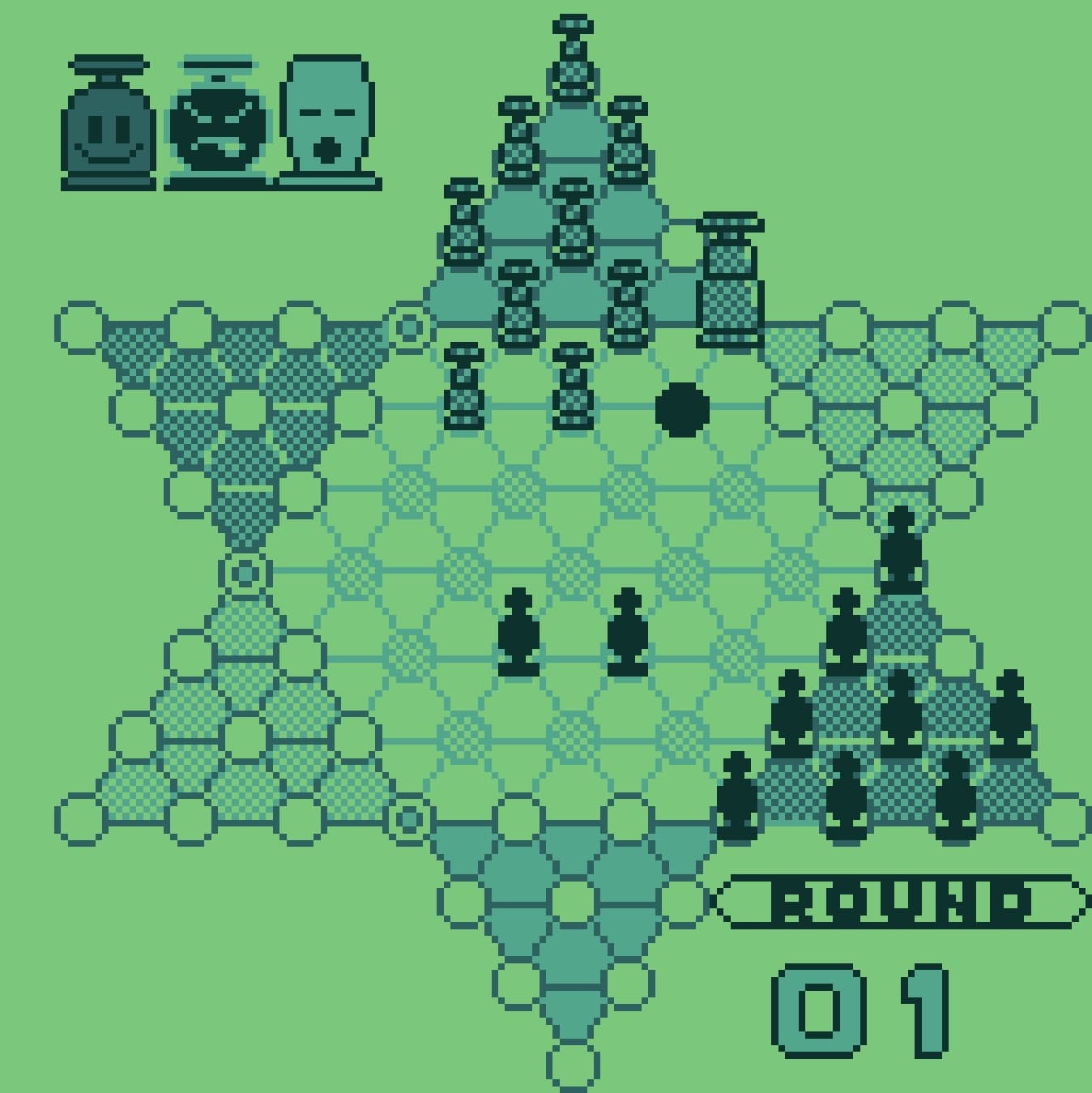 Visually, the game is about as exciting as a spreadsheet, but it’s remarkably functional. The developers used the Supervision’s four shades of gray to distinguish between the different sets of marbles, often employing different dithering patterns (solid, striped, or hollow) so you wouldn't lose track of which piece belonged to whom. Because the game is entirely turn-based and static, it completely bypasses the hardware's notorious "ghosting" issues. You can take as long as you want to contemplate your move without the screen turning into a blurry mess, making it one of the few games on the system that feels truly polished in its presentation.