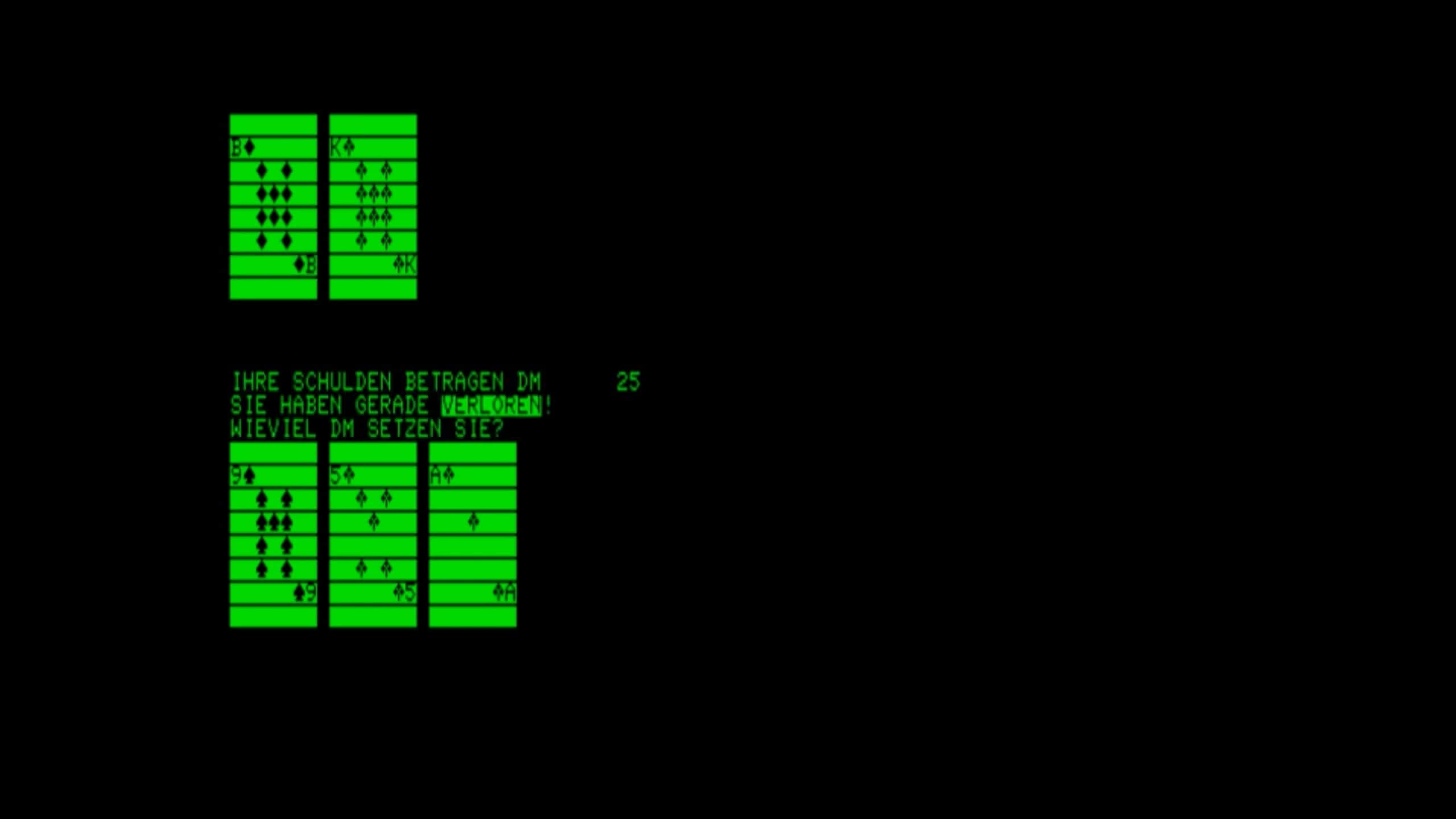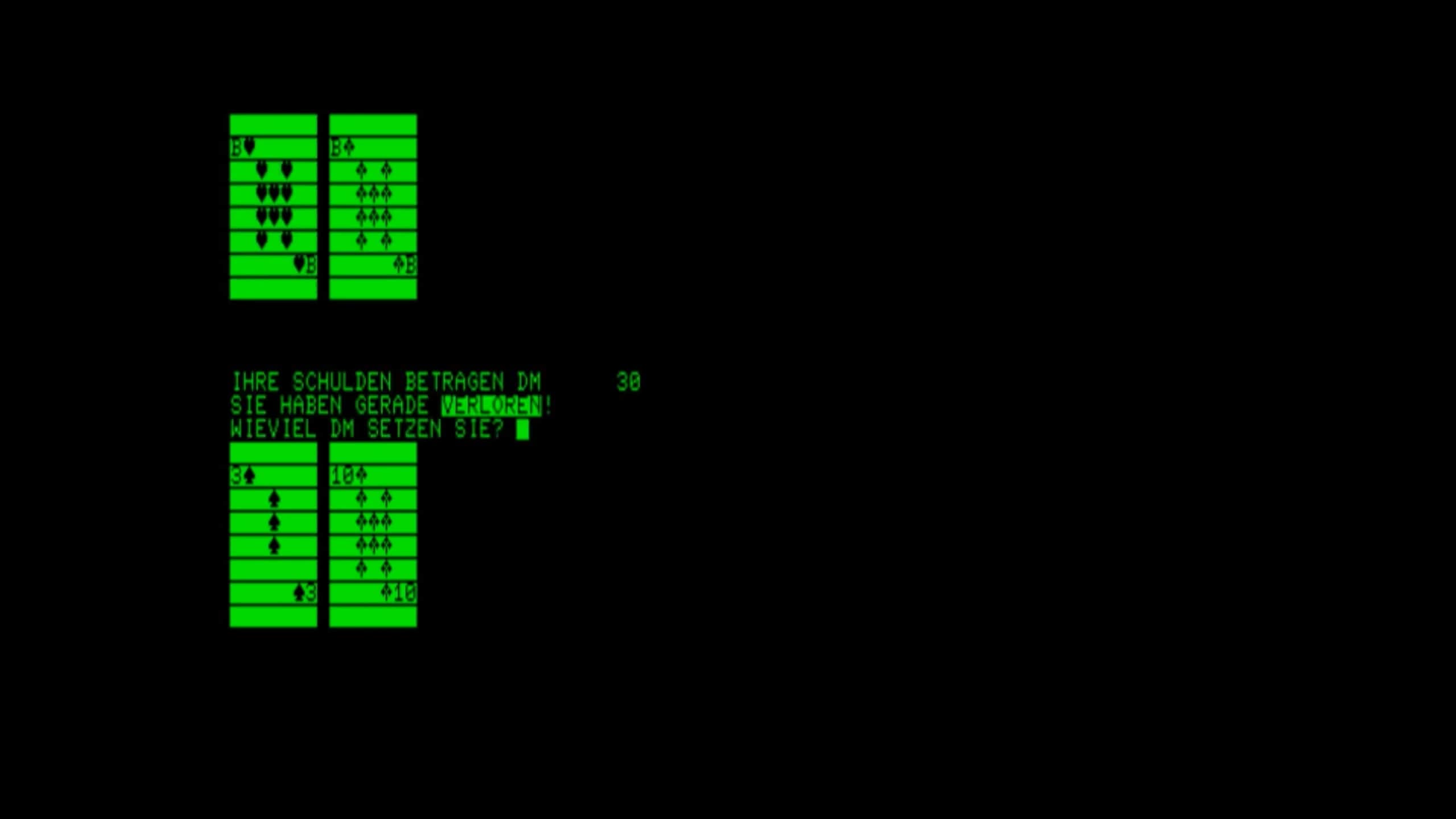 A simple game entirely in German, based on the card game "Pontoon", which is extremely similar to the modern game of Blackjack.