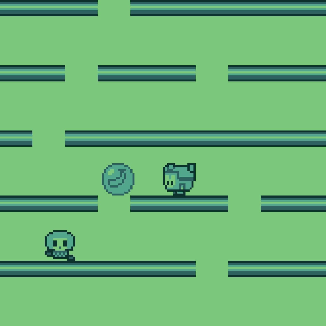 Bubble World is a methodical, grid-based action-puzzle game that trades high-speed shooting for careful planning and environmental manipulation. Rather than clearing bubbles from the sky, you control a small character tasked with collecting all the "bubbles" (which look more like orbs or crystals) scattered throughout a series of multi-tiered, single-screen stages. Once every item is collected, an exit door opens, allowing you to advance to the next level.